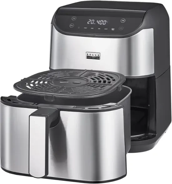 Cook healthier, delicious meals with the Bella Pro 6-Qt. Touchscreen Air Fryer, designed for fast, oil-free frying with a sleek stainless steel finish. Featuring a powerful heating system, digital touchscreen controls, and a spacious capacity, this air fryer makes meal prep easy and efficient.