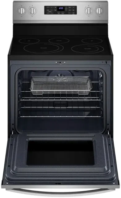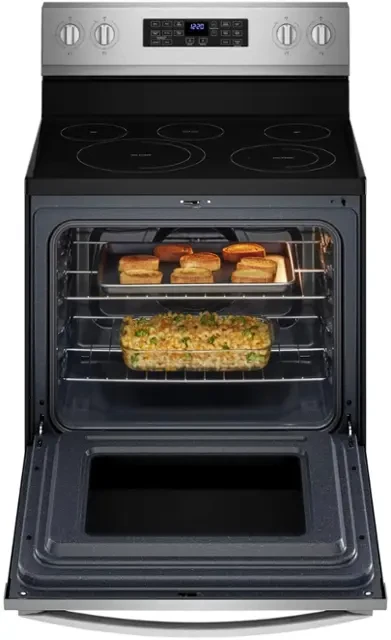 Upgrade your kitchen with the Whirlpool 5.3 Cu. Ft. Freestanding Electric Convection Range, designed for efficiency, style, and innovation. With a sleek stainless steel finish, this range not only enhances your kitchen’s aesthetics but also delivers powerful performance for all your cooking needs.