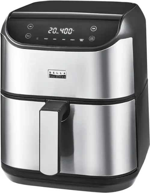 Cook healthier, delicious meals with the Bella Pro 6-Qt. Touchscreen Air Fryer, designed for fast, oil-free frying with a sleek stainless steel finish. Featuring a powerful heating system, digital touchscreen controls, and a spacious capacity, this air fryer makes meal prep easy and efficient.