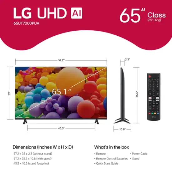 Upgrade your viewing experience with the LG 65” UT70 Series Smart webOS TV today!