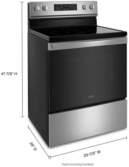 Upgrade your kitchen with the Whirlpool 5.3 Cu. Ft. Freestanding Electric Convection Range, designed for efficiency, style, and innovation. With a sleek stainless steel finish, this range not only enhances your kitchen’s aesthetics but also delivers powerful performance for all your cooking needs.